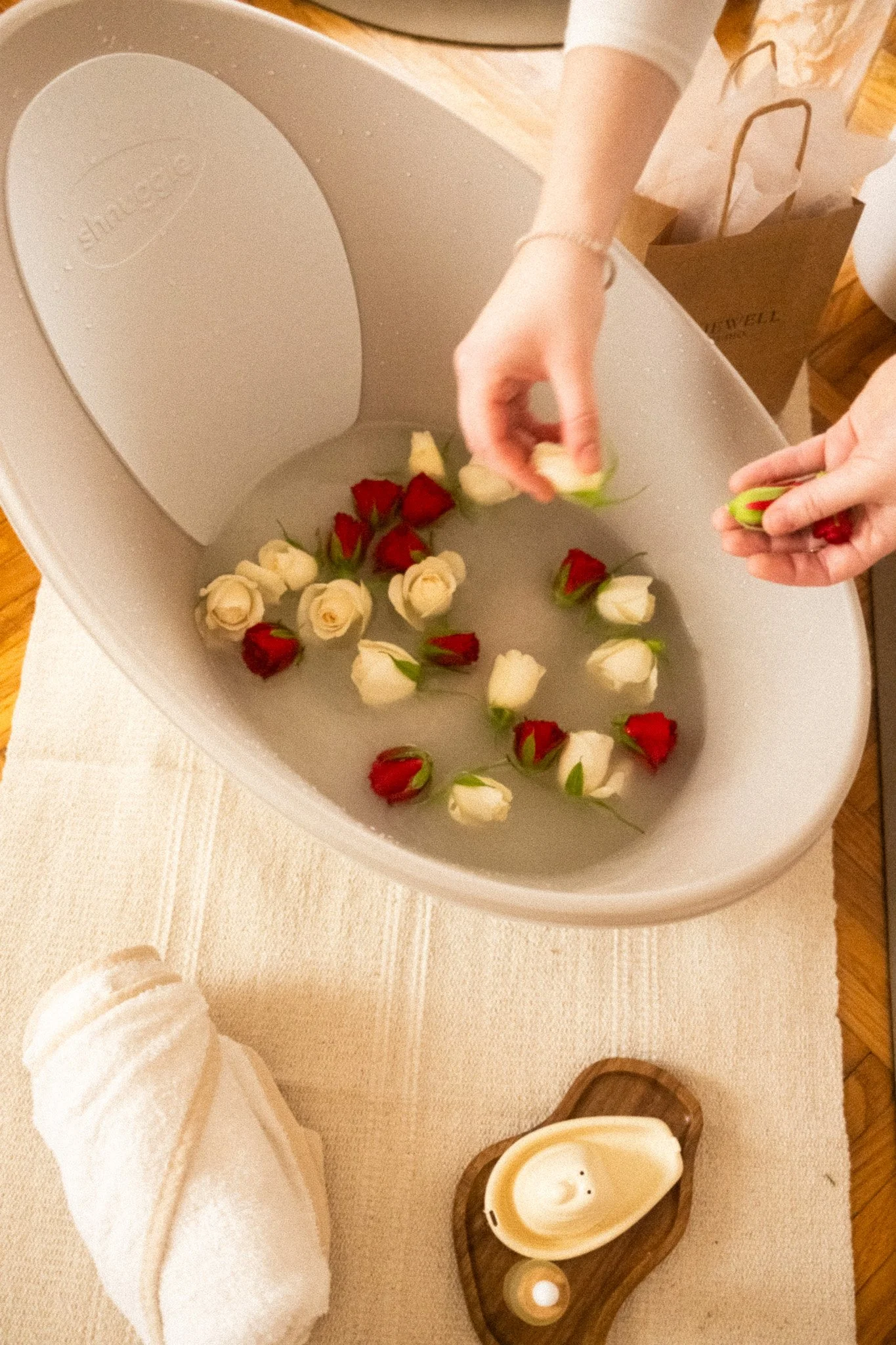 A rózsás tejfürdő lágy ölelése úgy veszi körül a kisbabád, ahogyan a pocakod óvó melege tette hónapokon át.
